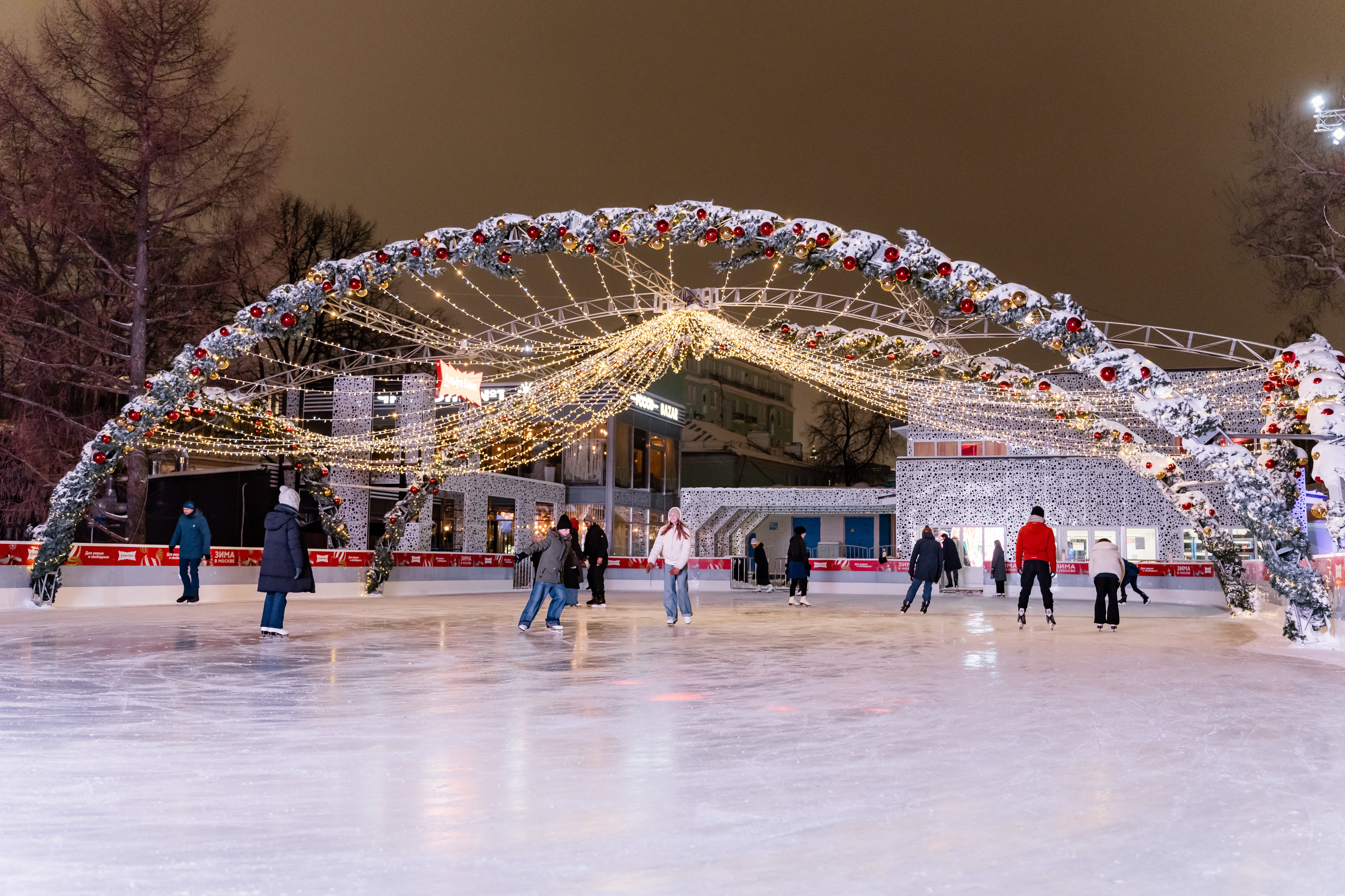 Каток на Красной площади в окружении новогодней ярмарки — один из самых нарядных и сказочных в городе. Весь сезон на катке проводятся не только представления и праздничные мероприятия, но и мастер-классы по фигурному катанию и хоккею — необходимый инвентарь можно взять в пункте проката. Традиционно первые четыре сеанса на катке бесплатные. Кстати, дети до семи лет в сопровождении взрослых тоже проходят без оплаты.