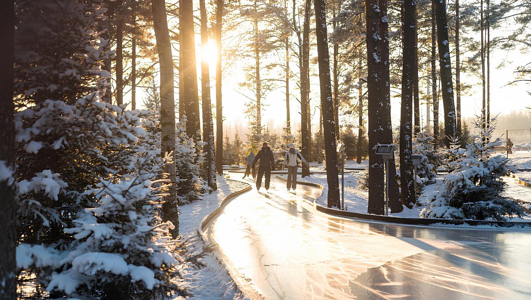 Сказочный каток находится в хвойном лесу в 10 километрах от города. Извилистые ледяные дорожки, украшенные сотнями огоньков, впечатляют кинематографичной атмосферой — протирайте камеру телефона и готовьтесь делать красивые снимки, особенно в снежные дни. На катке есть отдельная зона для начинающих, бесплатные обучающие мастер-классы, несколько зон отдыха и кафе.
