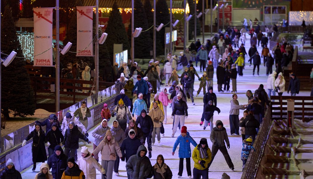 Основное катание. Просторная ледовая поверхность предназначена для свободного катания. Над площадкой звучит музыкальная подборка: популярные хиты, композиции советских лет и классические произведения;