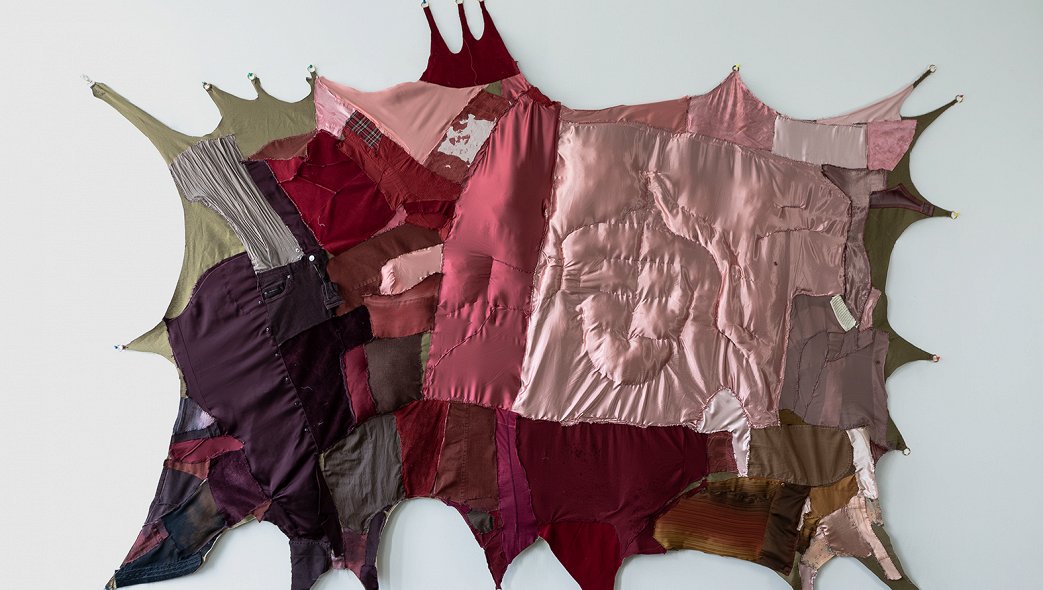 В противовес «твердым» медиумам империи (мрамор, металл) художница выбирает «мягкие» и мимолетные: текстиль, акварель. Ее скульптуры — это не памятники героям на постаменте, а хрупкие анти-монументы, телесные формы, напоминающие о ранах, швах и внутренних процессах. Строка «Лягу в землю» обретает двойной смысл, в котором соприсутствуют и трагический финал, и акт слияния, растворения жестких границ. Плетение ткани, акт сшивания, стежки, гибкие, неровные края размывают границы тела, соответственно на картах уничтожаются четкость маршрутов завоевателей, превращая границы в подкожные сосуды, вены. Ткани, хранящие память прикосновений, становятся саваном и колыбелью одновременно.