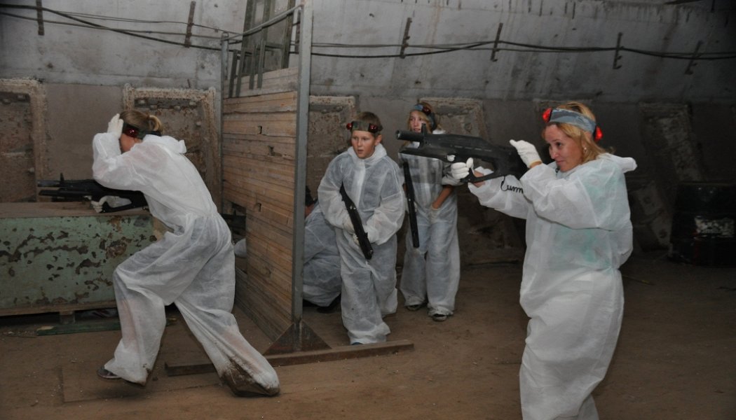 В нашем бункере проводиться военно-тактическая игра с использованием безопасного лазерного оружия и сенсоров, фиксирующих попадания.Представляет собой игровые раунды, в течение которых игроки в командах разыгрывают различные сценарии боевых столкновений. Наша площадка оборудована необходимыми укрытиями, а проведение программы обеспечивают опытные и квалифицированные аниматоры.
