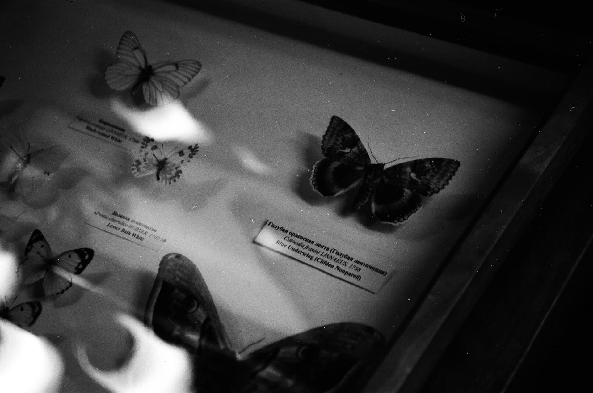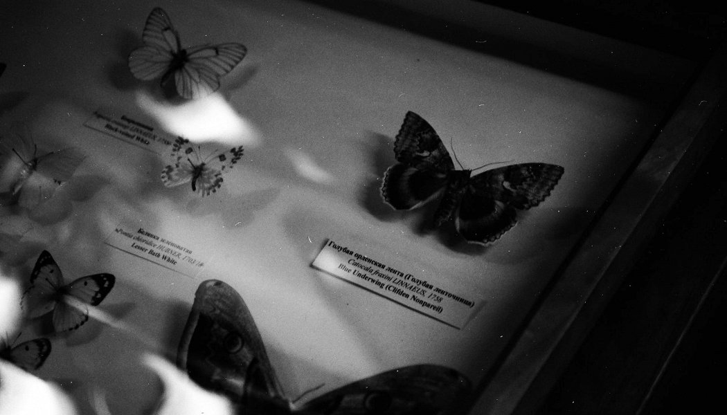 В разделе «Слово молодым...» выставка молодого куратора, магистранта СПбГУ Ильи Крончева «Как поймать мотылька?»