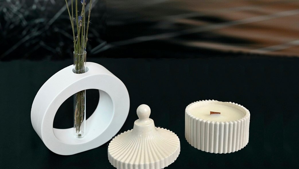Участникам предлагается руками создать из гипса уникальную декоративную композицию - ароматную свечу и вазу.