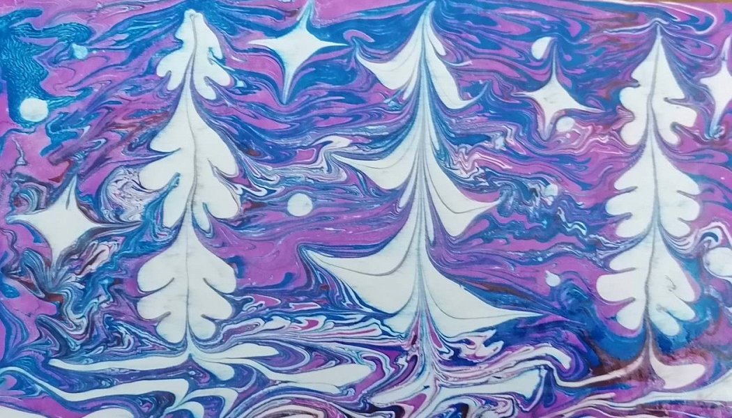 Эбру (от персидского ebri – «облако») – это древний способ живописи красками по воде с дальнейшим перенесением рисунка на твердую основу (бумагу, ткань или кожу). Техника предоставляет художнику широкие возможности для создания уникальных изображений, искусно имитирующих фактуру натурального камня – мрамора. Поэтому эбру часто называют «мраморингом» или «турецким мраморированием».