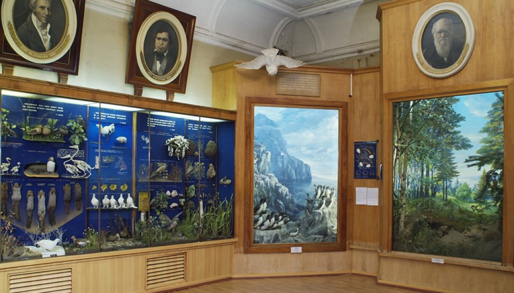 Это один из самых красивых залов музея, построенный в 1959 году к юбилею Ч. Дарвина и его знаменитой книги «Происхождение видов». Он оформлен в классическом художественном стиле, характерном для середины ХХ века. Это первая в России экспозиция по дарвинизму, удачно сочетающая принципы научности и наглядности. Она раскрывает основные положения эволюционного учения выдающегося английского учёного-естествоиспытателя Чарльза Дарвина, который впервые объяснил причины изменяемости и многообразия видов, целесообразности и гармонии в природе, доказал необратимость развития природы. Его идеи выдержали проверку временем и легли в основу современной теории эволюции.
