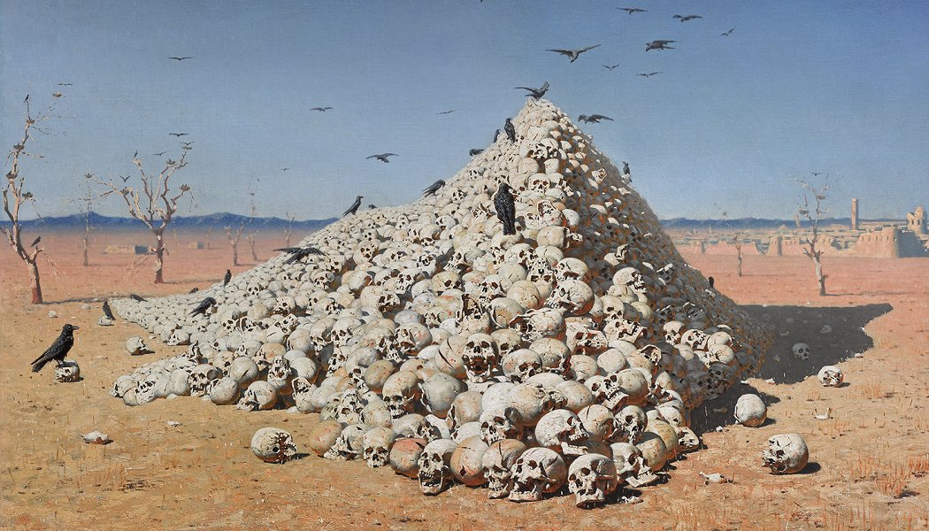 На раме работы "Апофеоз войны" написано "Всем великим завоевателям, прошедшим, настоящим и будущим"- звучит, как завещание.