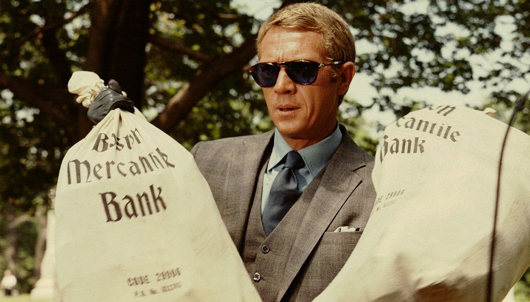 Находящийся в расцвете мужского обаяния Стив МакКуин торгует недвижимостью, грабит банк, играет в поло, гоняет на гоночном автомобиле, летает на самолете и ведет напряженную интеллектуально-эротическую партию в шахматы с молоденькой Фэй Данауэй, до финальных титров сомневающейся, за чем конкретно она ведет охоту: за сердцем героя или за его миллионами?