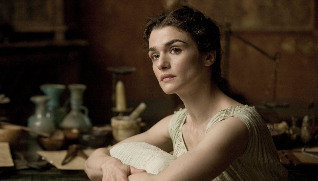 Конец четвертого века нашей эры, Александрия доживает последние годы в качестве культурной столицы мира. Красотка Гипатия (Вайс), дочка директора Александрийской библиотеки, ходит босиком по нагретому мрамору, размышляя об орбитах небесных тел, а в свободное время преподает местной золотой молодежи точные науки плюс — с опережением на пару тысячелетий — основы феминизма. Те слушают с открытыми ртами (понятно, не из-за интереса к точным наукам). Один из влюбленных учеников (Эванс) впоследствии станет важным епископом, другой (Айзек) — имперским префектом. Оба умоют руки, когда получившие господдержку христиане начнут разносить остатки античного мира в мраморную крошку.