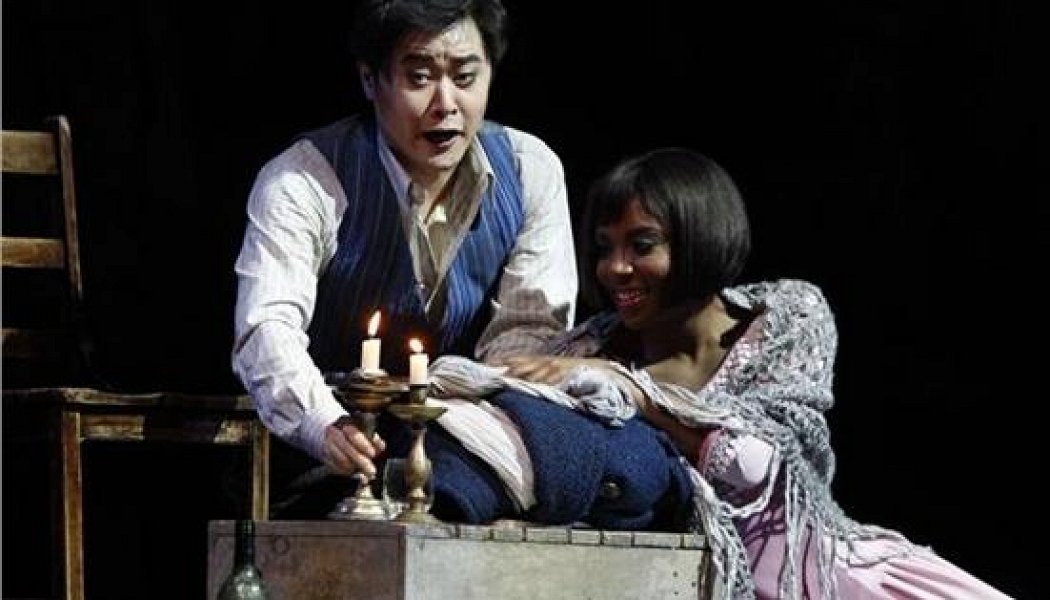 Мощное сопрано Такеши Меше Кизарт и лауреат премий, тенор Чжи Мин Пак блистают в новой постановке Гейл Эдвардс, которая перенесла «Богему» Пуччини в декорации Берлина 1930-х годов. Трагедия влюбленных разворачивается в атмосфере города, стоящего на пороге больших перемен, Веймарская республика доживает последние дни. Как объясняет Гейл, «мы решили, что действие будет происходить в прекрасном, но политизированном мире, в мире, где можно умереть на улице, где нет никаких гарантий, в мире, который балансирует на краю пропасти». В этой яркой постановке угадывается влияние «большого Голливуда», а неминуемая трагедия мира, находящегося на грани катастрофы, придает ему хрупкость. Мнимая роскошь кафе — лишь зыбкая декорация, которая едва скрывает тягостное существование Германии 1930-х годов.