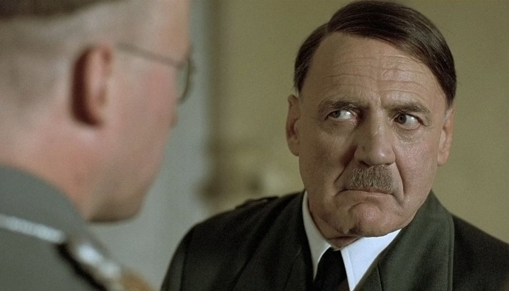 «Бункер» (в оригинале «Падение») — экранизация воспоминаний самой юной из четырех гитлеровских секретарш Траудль Юнге, которая за три года работы в рейхсканцелярии вышла замуж за гитлеровского адъютанта, овдовела, но так ни черта и не поняла: кто такой Гитлер, ей потом долго объясняли американские следователи. Монотонностью, избытком серого и зеленого, общей удушающей сыростью фильм похож на «Молоха» Сокурова — но, конечно, без сокуровской маниакальной зацикленности на тактильных ощущениях и бытовых деталях, проще и площе. Гитлер (какое-то кощунство есть в том, что у него те же глаза, что и у влюбленного ангела из «Неба над Берлином») брызжет слюной, щупает дрожащими от Паркинсона пальцами шпейеровские макеты нового Берлина, бросает в контрнаступление давно погибшие танковые армии. Ева Браун на каблуках прибегает в комнату обслуги: «Девочки, а давайте покурим пока не бомбят». Хиршбигелю хорошо даются закрытые пространства (см. его же «Эксперимент») и совсем плохо — открытый воздух. Местами он городит совершеннейшую фанеру — изрядный ломоть фильма отдан под приключения совестливого военврача в чине полковника СС; но есть тут и феерические моменты: когда, скажем, в преддверии конца вожди выстраиваются к героине диктовать политические завещания, и она, пусть ей и неловко, вынуждена сказать им что-то вроде: «Вас много, а я одна». Режиссер довольно внятно объясняет разные правильные и понятные вещи — про блаженство неведения, например, про ответственность, которой неведение не отменяет. Но про главное — про то, ради чего стоило лезть под землю и рушить по новой Берлин, сказать не умеет. Оно прячется в углу экрана, за скрюченными плечами Бруно Ганца. Там, в мутной зелени, что-то определенно маячит, но подойти и рассмотреть никак нельзя: сразу слышен хруст челюстей, раскусывающих ампулу с цианидом.
