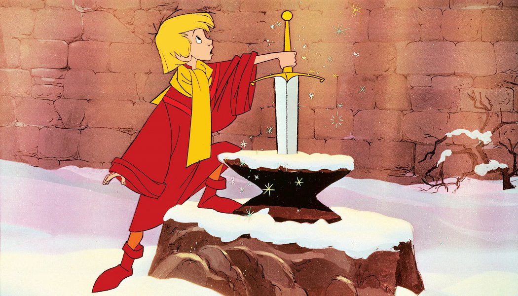 Анимационная адаптация первой части тетралогии «Король былого и грядущего» Теренса Хэнбери Уайта, вдохновленной «Смертью Артура» сэра Томаса Мэлори. Однако там, где у Уайта был философский трактат по основам мудрого королевского менеджмента, у «Диснея», конечно, все не так сурово. «Меч в камне» — это развлекательный мультфильм, тем не менее сохранивший умную установку оригинала: экстравагантный волшебник Мерлин учит будущего короля Артура (а пока просто Варта) быть достойным человеком, постоянно превращаясь с ним в различных животных: рыбок, птичек и белок. К слову, с превращением в белок связан самый душераздирающий момент этой, быть может, не самой складной, но чрезвычайно обаятельной, а местами чертовски остроумной картины — последней из классической линейки, снятой при жизни Уолта Диснея.