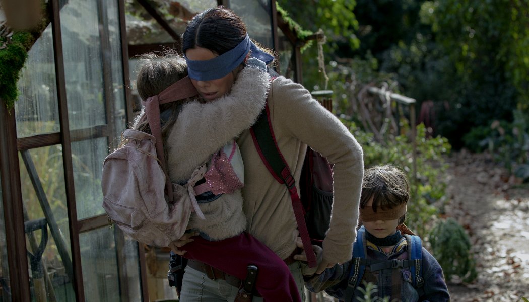 Экранизация свежего бестселлера в постановке востребованной датчанки Сюзанны Бир (предыдущая ее работа — сериал «Ночной администратор»). Концепция следующая: Землю завоевали некие существа, при виде которых у людей появляется нестерпимое желание покончить с собой. «При виде» — не совсем точно, поскольку они невидимые, то есть жертва тупо смотрит в пространство, а потом, допустим, перерезает себе горло. И выжить на улице можно только с повязкой на глазах. Короче говоря, это как «Тихое место», только про зрение. И тут тоже героиня глубоко беременна! Ее играет Сандра Баллок. В настоящем она уже плывет вслепую по реке с двумя детьми в надежде, как водится, попасть в некое безопасное место, а во флешбэках — которые занимают большую часть фильма — нам объясняют, как все произошло. В группе выживших стоит отметить модного Треванте Родса (у него любовь с Баллок, которая старше его почти ровно в два раза) и Джона Малковича в привычном образе клинического мизантропа (нежного в самой глубине души). Помимо полного набора постапокалиптических штампов этот красивый, но глуповатый, бесформенный и очень неудачно завершающийся фильм содержит идею — тоже далеко не новую — о деторождении как мистическом акте, на который, как на новогоднюю елку, можно навесить любые метафоры. В общем, и зажмуриться обидно, и смотреть больно.