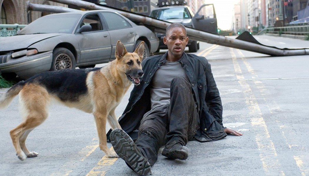 В недалеком будущем по живописно поросшему сорняками Нью-Йорку гуляет высокий негр (Смит) с винтовкой наперевес, выслеживая пасущихся где-то поблизости антилоп. Военный вирусолог Невилл оказался единственным, судя по всему, выжившим после мировой пандемии. Он ездит на спортивных машинах, потихоньку мародерствует, играет сам с собой в гольф на палубе застрявшего у берегов Манхэттена авианосца, слушает Боба Марли, пересматривает Скорсезе и «Шрэка» и вступает в довольно сложные психологические отношения с манекенами из какого-то бутика. Более отзывчивую компанию ему составляет любимая собачка. А также те, из-за кого с последними лучами солнца он наглухо запирает окна и двери своей шикарной квартиры с Ван Гогом (тоже, очевидно, сворованным) на стене.