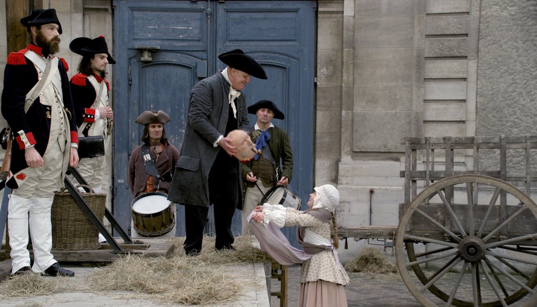 На это прозрачно указывает уже первая сцена, почти никак сюжетно не связанная с последующими — сюжет тут вообще ослаблен донельзя, — но задающая интонацию. На дворе Великая французская революция. Чернь приветствует экзекуцию немолодого маркиза, который невозмутимо докуривает трубку перед эшафотом. Невольно ждешь какого-то поворота интриги, заевшего ножа гильотины или явления чудодейственного спасения — но все идет как по маслу, и вот палач вытаскивает из корзины голову казненного. Голова, кстати, явно бутафорская. За реализмом Иоселиани никогда не гонялся — а здесь еще и специально показывает, как эту голову изготавливают, нам на потеху.