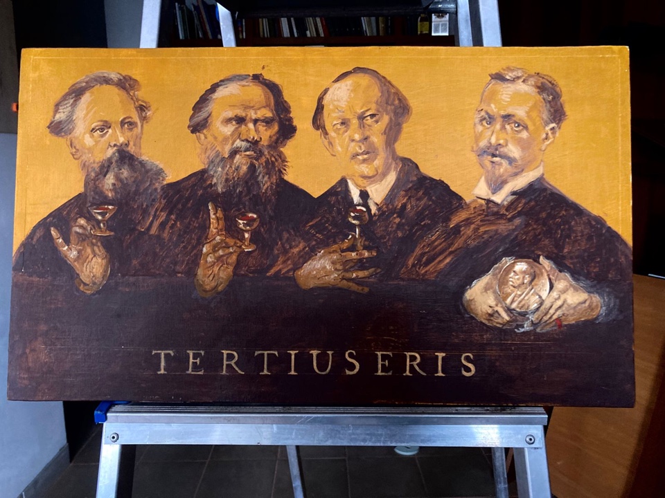 Алексей Толстой был страстным собирателем искусства. Гуляя по музею, создается впечатление, что порою в своей страстной привязанности к искусству он был не слишком разборчив, собирал все подряд. Мы честно искали логику в коллекции, но обнаружить ее нам не удалось. Под одной крышей Толстой собрал комплект кресел из Михайловского замка в Петербурге, барочную мебель и уникальные осветительные приборы 18 столетия. На стенах расположились Рокотов с Брюлловым, Бенуа, неизвестные итальянские художники XVI века, акварелист XIX века Василий Садовников. Нас поразила картина Босха...
