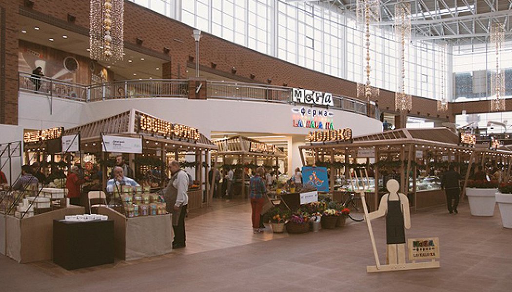 Располагается рынок на первом этаже комплекса, в районе фудкорта, — там, где раньше находился каток. Пространство разбито на 8 зон по категориям продуктов — «Молоко», «Сыр», «Деликатесы», «Овощи», «Мясо» и т.д. Общей кассы нет, каждый продавец самостоятельно рассчитывается с покупателями, что несколько напоминает универсам советской поры, только с продуктами. Стандартная корзина представлена практически полностью: можно купить не только пельмени, сыр, колбасу, картошку, рыбу, мясо и птицу, но и творог из топленого молока, греческое оливковое масло, яблоки сорта «синап» и фуа-гра. Есть даже лавка с крафтовым пивом. Заметен перекос в сторону белковых продуктов: их существенно больше, чем овощей и фруктов; оно и понятно — зима, с зеленью не разбежишься. Цены ниже, чем в магазинах Lavkalavka, да и специфика рынка дает о себе знать: на остатки товара цена снижается радикально (например, оставшиеся пол-ящика вкуснейших яблок продавали по 100 р. за килограмм). Сейчас на рынке занято около 70 прилавков — и похоже, что мест уже не хватает: по дальнему краю выставляют маленькие столики для припозднившихся с заявкой на место.