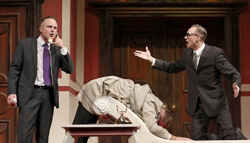 Ричард и вызванный им в помощники Джордж Пигден всячески пытаются спрятать труп. При этом каждый их шаг лишь запутывает ситуацию, которая становится и вовсе катастрофической с появлением в номере сначала управляющего гостиницы, затем жены Ричарда и, наконец, ревнивого мужа секретарши Джейн… Не говоря уже о том, что покойный грабитель оказывается… Впрочем, сами увидите!