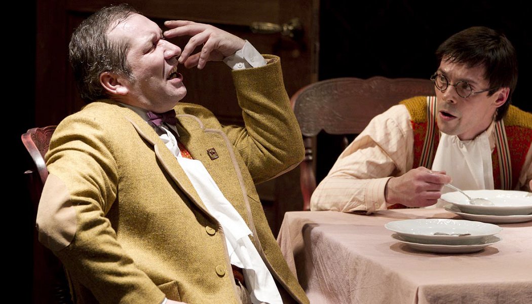 Спектакль поставлен по одному из рассказов Патрика Зюскинда, где в общем-то проповедуется оправдание текущих поступков, а не признание неправоты с попыткой, пусть не сейчас, когда-нибудь, когда будет хоть какая-то возможность, начать с чистого листа. Не, проще назвать серое белым и жить спокойно, тоже самое, что приветствуется и в его же "Парфюмере": объявим талантливого человека ненормальным, а лучше маньяком и будем жить спокойно, - ну очень современное веяние, построенное на похвальной зависти великим.