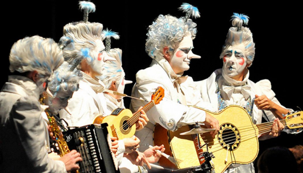 Ассоциаций уйма: от «Дороги» Феллини и «Гуттаперчевого мальчика» Григоровича до гравюр Кало, группы The Tiger Lillies и, разумеется, полунинских «Лицедеев». Если их привести к общему знаменателю, оставив за скобками всевозможные экзистенциальные мотивы, и представить, что в такой цирк пришел Хантер Томпсон, тогда то, что откроется его взору, и будет шоу «Алегрия». Психоделическое разноцветное зрелище с виду — в своей основе абсолютно традиционно. Это такой мюзикл со сквозной историей, едва угадывающейся за чередой цирковых номеров, которые и есть суть зрелища: летают акробаты, пинают друг друга клоуны, танцует с огнем факир, стоит на руках гимнаст и нарушают законы физики близнецы-гимнастки. В центре внимания — непрерывно поющая то тут, то там фея с муравьиными рожками. Все это под несложный и громкий аккомпанемент ряженого оркестрика, засевшего в глубине выстроенной сцены. Калейдоскопическое освещение в сочетании с чудаковатыми сказочными костюмами создает иллюзию, будто ты заглянул в волшебную шкатулку, особенно если смотреть спектакль с трибун.