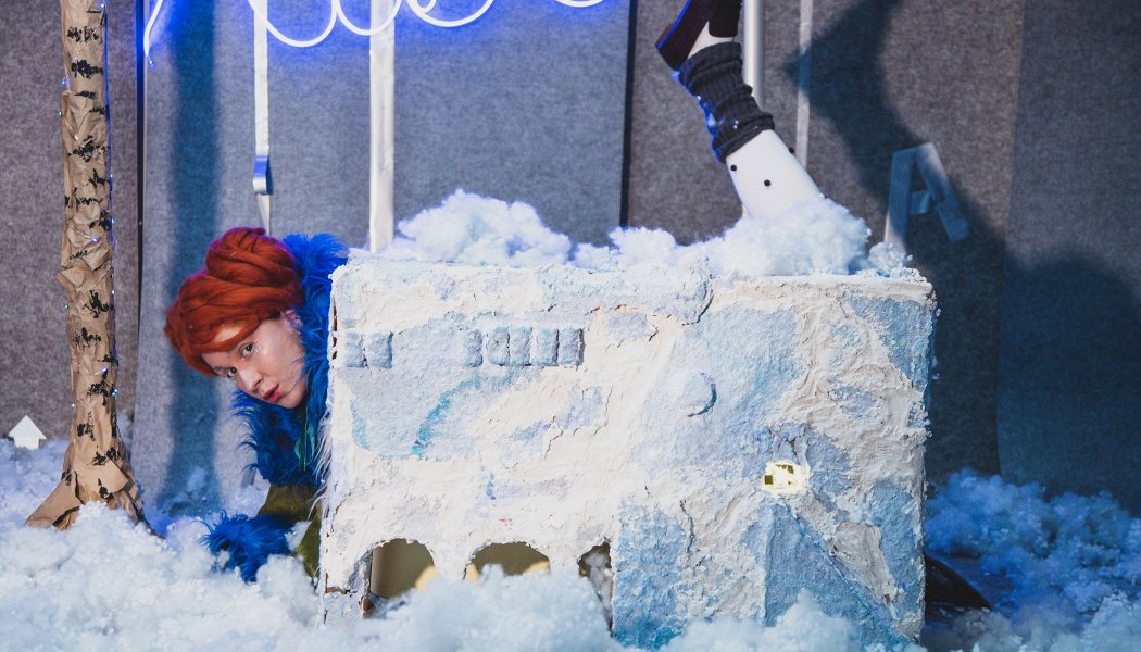 В спектакле «Ася ищет слова» как будто проваливаешь в сладкий сон: где герои среди игрушечных заснеженных декораций и снега из ваты говорят на выдуманном языке, где волшебное соседствует с абсолютно реальным, родным и очень знакомым.