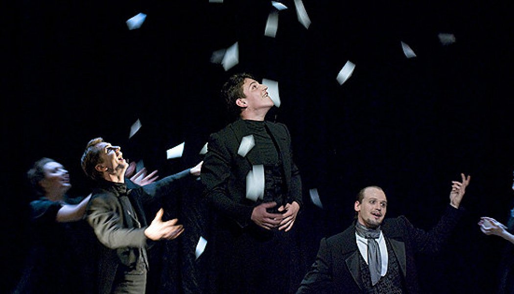 Зачем нужен этот спектакль, в общем, понятно. Не только для удовольствия публики, но и для трудотерапии молодых артистов БДТ, которые в основном репертуаре либо толком не заняты, либо заняты не слишком удачно. И действительно, они талантливы. У Ивана Федорука (Германн) есть привлекательная внешность и эмоциональная наполненность: правда, вместо рискового игрока он с самого начала спектакля изображает неуравновешенного неврастеника. Такой Германн вряд ли смог бы не то что метать, но даже тасовать колоду — по причине сильного тремора в пальцах. У Алексея Винникова (Томский) есть спортивная стать и мужская харизма. Ничего другого ему здесь и не требуется: его партия схематична — эдакий поручик Ржевский, недалекий, но обаятельный циник. Екатерина Старателева мало что очаровательна, так еще естественна и искренна; вот только ее бедная Лиза вышла уж слишком прыткой и темпераментной — вряд ли это осмысленная трактовка, скорее результат преувеличенного «оживляжа», ставшего едва ли не формулой спектакля. Имя дебютантки Марии Сандлер (пара реплик в «Дядюшкином сне» не считается) следует запомнить. Ее отстраненная игра с образом престарелой графини — лучшее, что можно найти в «Атанде». И хотя, строго говоря, патент на кунштюки с ролями старух — такие, что роли оказываются скроены из изящества, ласкового кокетства и актерской иронии, — в России принадлежит Ксении Кутеповой, но и на долю графини в исполнении Сандлер найдется восторженный зритель-неофит Новосельцев, который воскликнет: «Она не старуха!» Семен Мендельсон давно доказал свой актерский талант (еще он, кстати, двигаясь по стопам знаменитого однофамильца, написал для «Атанде» недурную музыку). Существует Мендельсон в спектакле с блеском. Бесом юлит, строит каверзы, хмурится и хохочет, он всюду и он нигде. Вот только вопрос: кто этот беспокойный бес? Сочинитель Пушкин? Или аллегория слепого случая? Или районный психиатр, повествующий об интересной истории болезни?