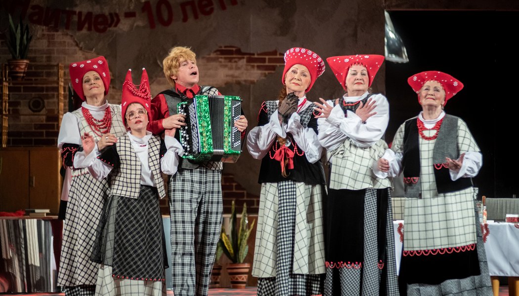 Участницы ансамбля народной песни «Наитие» собираются за кулисами
