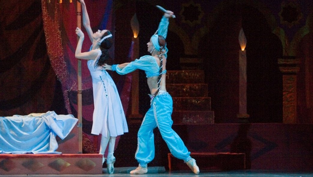 Печальное предание о страстной любви и роковой ревности — балет «Бахчисарайский фонтан» Бориса Асафьева, написанный по мотивам одноименной восточной поэмы Александра Пушкина. Действие происходит в Польше и Бахчисарае на рубеже XVIII–XIX веков. В мирное течение жизни польского княжества с разрушительной силой вторгаются полчища крымского хана Гирея (Ильдар Маняпов), в неравной борьбе с которыми повергнут князь Адам, похищена дочь князя Мария (Гузель Сулемайнова), сражен клинком преградивший путь иноземцам ее жених Вацлав (Сергей Бикбулатов). Пораженный красотой польской княжны, Гирей тщетно добивается расположения прекрасной пленницы, чем вызывает пламенную ревность Заремы (Адель Овчинникова) — в прошлом самой любимой его жены. Так страсть хана становится роковой для Марии, которая падает невинной жертвой гнева отчаявшейся наложницы, пытающейся вернуть расположение своего господина. В память о княжне хан Гирей повелевает воздвигнуть во дворце великолепный фонтан, который нарекут «Фонтаном слез».