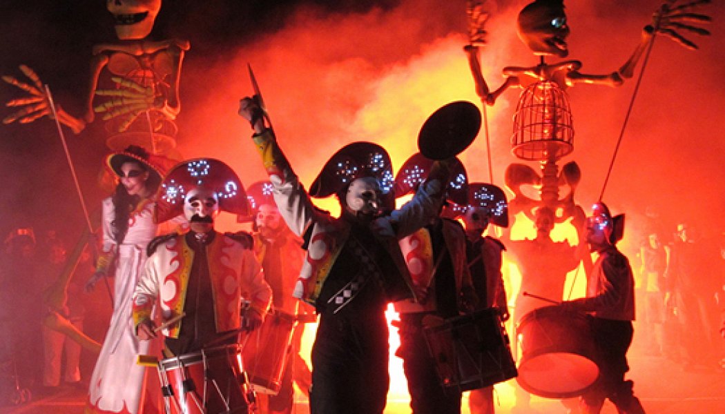 Пионеры уличного искусства французы Transe Express запомнились пермякам прошлогодним «Мобильным человеком». В этот раз они привезли макабрический спектакль «Барабаны смерти», который начнется парадом барабанщиков и закончится шабашем с обрядом перемещения в будущее и пиротехническим финалом.
