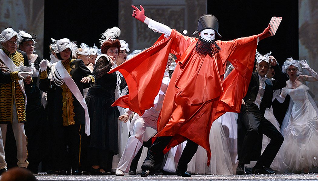После двух вставных романсов на стихи Блока «По вечерам над ресторанами» и «Девушка пела в церковном хоре» спектакль постепенно набирает драматизм. Главная драматическая фигура – сенатор Аблеухов, страдающий за сына-террориста-красное домино. Второе действие начинается с сильной драматической сольной партии Аблеухова, продолжается дуэтами восстановившихся супружеских пар – Аблеуховых и Лихутиных.
