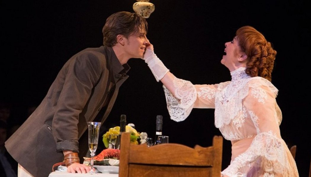 то остается восхищаться. Нет места критике, когда в белом кисейном платье выходит Серафима Сарытова (Татьяна Аугшкап), и давай расточать лучезарность свою направо, налево, успевай ловить. Она, по ходу дела, на гибельной дорожке, испытытвает кризис среднего возраста, пустившись не во все, но тяжкие. Страсть к молодому красавчику (Всеволод Макаров) свела с ума Серафиму. Рубится лес, закладываются бриллианты, и продан экипаж, и деньги уж закончились. Оттого и пьеса началась. Пока денежки еще оставались у бедовой Серафимы, никто не волновался, на какой соломе спит вдова, и на что гуляет управляющий в городе. Но это случилось. Последнее кольцо, последний займ, и вот снимает платье помещица Сарытова, вдруг родственнички прискакали, и буквально тащат помещицу за шкирку из-под стола.