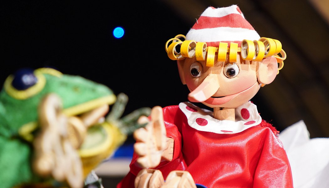 Спектакль интересен еще тем, что участвуют и куклы, и люди. Папа Карло, Карабас-Барабас и Король (да, сюжет довольно сильно отличается от книги, но без противоречий) исполнялись людьми, а вот все остальные были уже кукольные.
