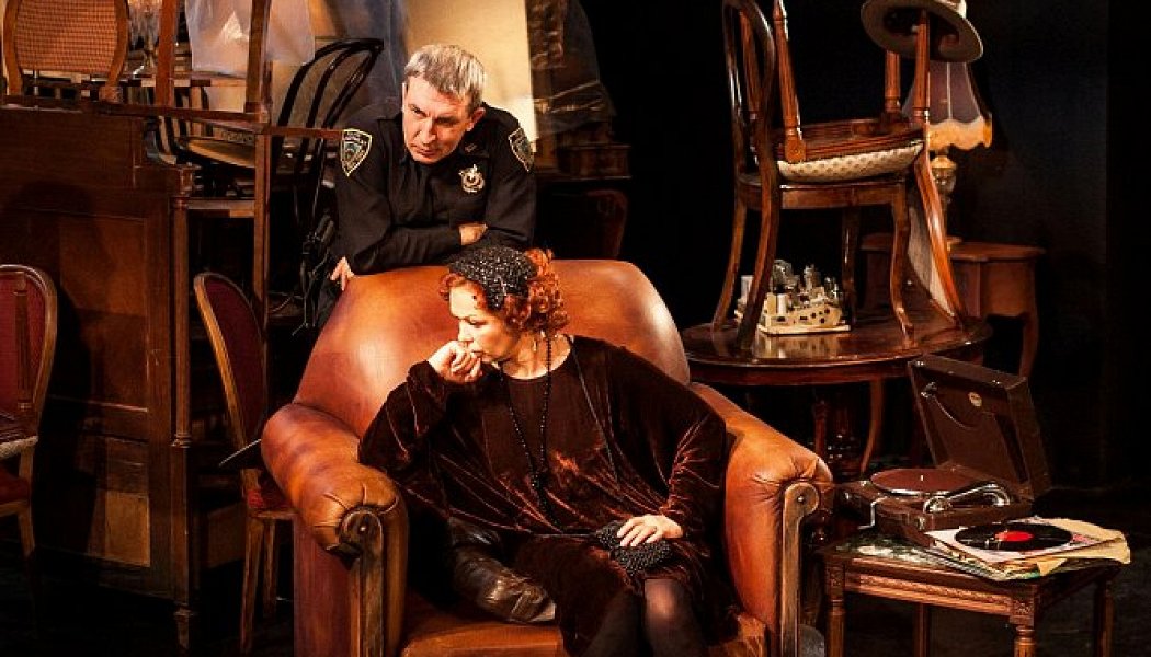 На Малой сцене театра им. Вл. Маяковского стулья свисают с потолка, а в зале нет свободных мест. Пятачок сцены укутан полупрозрачной пленкой (художник Владимир Арефьев), – защищен от пыли. Но пыль все равно есть – пыль обращенного во прах временем времени. Груда старой мебели, собранной в доме, обреченном на снос, – повод и символ этой истории. Новая мебель ждет своего часа в витринах, а эти вещи ожидают своей участи: и шкаф, и кровать, и арфа со сломанным резонатором, - грузны, старомодны, обветшалы. Вещи треснуты, дом идет на слом, да и «время вывихнуто»… Время в зале, как недавно подметили Сверху, «предгрозовое», время на сцене – после грозы, после «Великой депрессии». Гроза не освежила, разрушила дома и судьбы, планы и хребты.