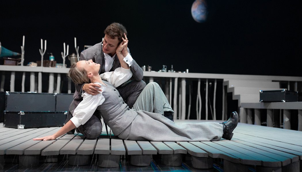Хочется разложить историю на краски — сначала это, конечно, цвет воды — чистый и мечтательный бирюзовый, подсвечивающий вкривь и вкось расставленные балки — театральные подмостки, возведенные вдохновленным Треплевым — драматургом (и художником-сценографом — Индре Пачесайте). С самого начала мы ощущаем жажду жизни и искусства, которая выражается в диалоге восторженного еще Треплева со своим насмешливым и слегка самоироничным дядей в исполнении Александра Резалина, чье появление на сцене во всех последующих эпизодах знаменует собой постепенное угасание жизни, которая еще теплится, но вот уже остывает незаметно, неотвратимо. «Холодно, холодно, холодно. Пусто, пусто, пусто. Страшно, страшно, страшно» — ведь это не столько видение мира героиней Нины Заречной, сколько пророческое самоощущение самого Кости Треплева, который уже начинает чувствовать безразличие окружающего, мешающее, как ему кажется, творить по-настоящему, и составляющее трагедию всего существования.
