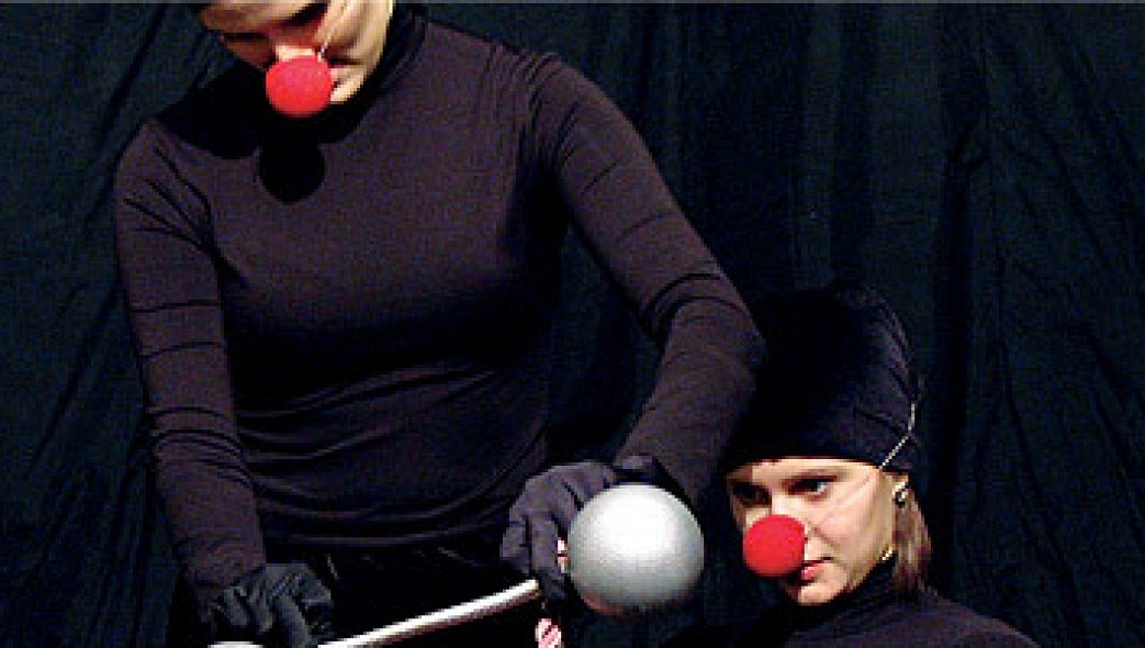 Под нитками дождя ветер терзает старую цирковую афишу, в какой-то момент она рассыпается гурьбой клоунов — и те, достав из карманов лоскуты, скручивают их в циркачей. Силач, канатоходцы, акробаты—дылды и коротышка, тигры, девушка с хулахупом, полосатый шарф вместо коверного клоуна — циркачи эти прямо на столе, заменившем арену, выполняют невероятные, дико смешные трюки — и разлетаются после, как привидения, превратившись обратно в лоскуты. Этот необыкновенно трогательный спектакль некогда был курсовой работой курса Александра Миндлина.
