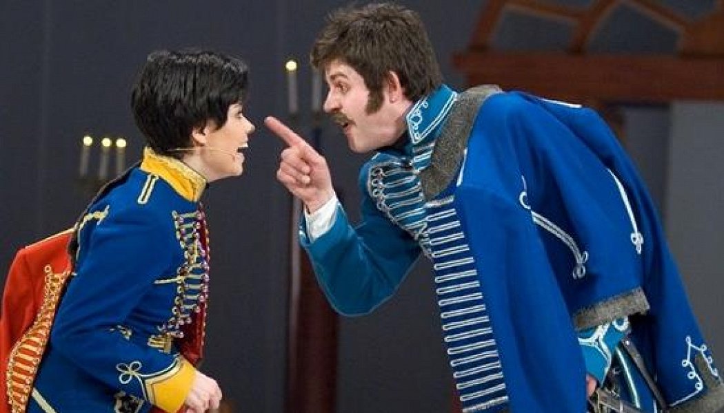 Давно мечтала увидеть оригинальный вариант любимого с детства фильма на сцене. И вот, наконец-то 5 декабря мне это удалось. Очень тяжело не сравнивать, особенно, женские персонажи: ведущие актрисы больше напоминают современных подростков с неестественными голосами и интонациями. Иногда, правда, забывались и начинали играть совершенно обычно, в такие моменты смотреть было приятно. Пара раз проскакивали проблемы со звуком, вот плохо доверять аппаратуре, а не своему голосу, но к чести исполнителей, они не стали заострять на этом внимания.