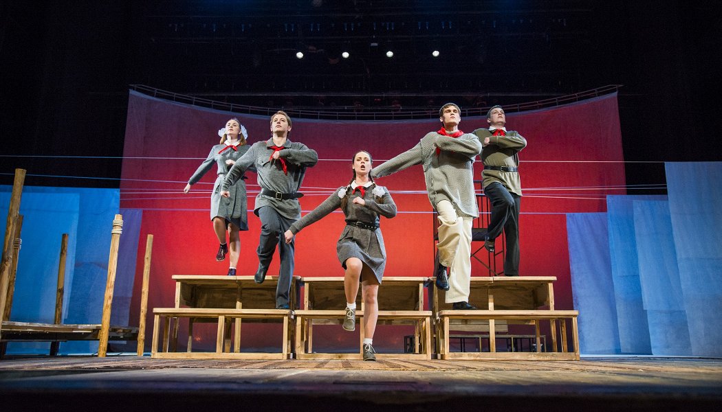 Спектакль Молодёжного театра – старая как мир, вечная история. А используемые в нём современные выразительные средства: динамичная проекция в качестве элемента декорации, лёд, по которому коньках катаются актёры, дым, свет… – помогают создать атмосферу непреходящей романтики.
