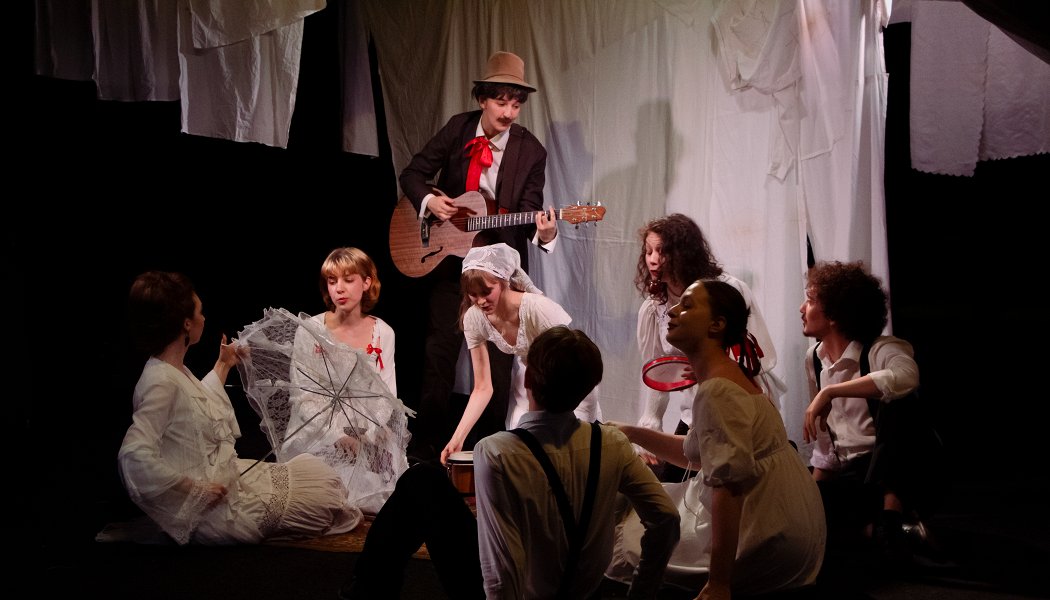 Школьный материал превращается в ретроспективную фантазию о том, о чем говорят, над чем смеются и что делают чеховские герои, пока в головах еще не пульсируют топоры по вишнёвым деревьям, а трагичная случайность не изменила ход событий.