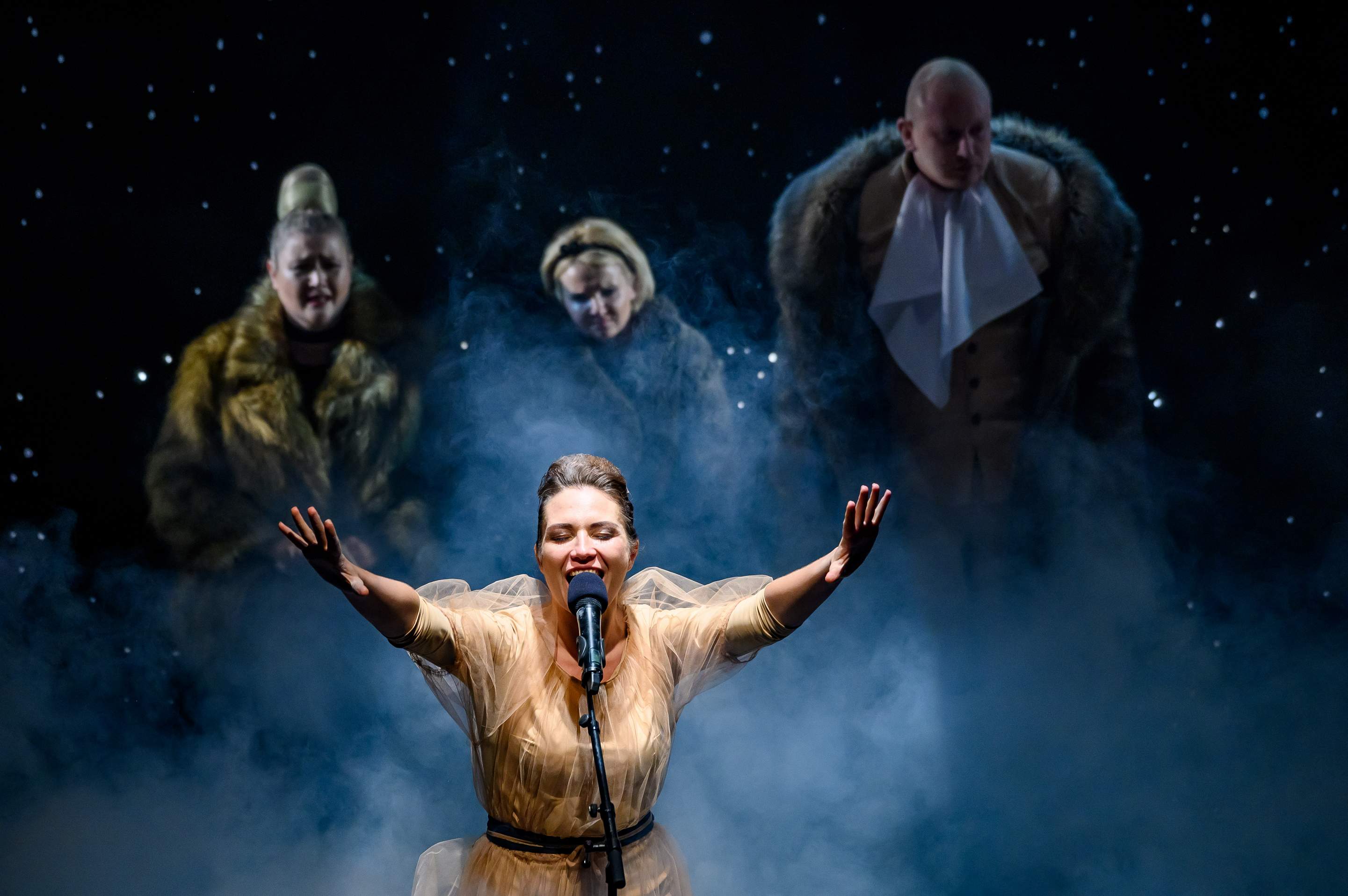 На большой сцене театра постановка одной из самых популярных пьес американского драматурга ХХ века Торнтона Уайлдера «Долгий рождественский обед».