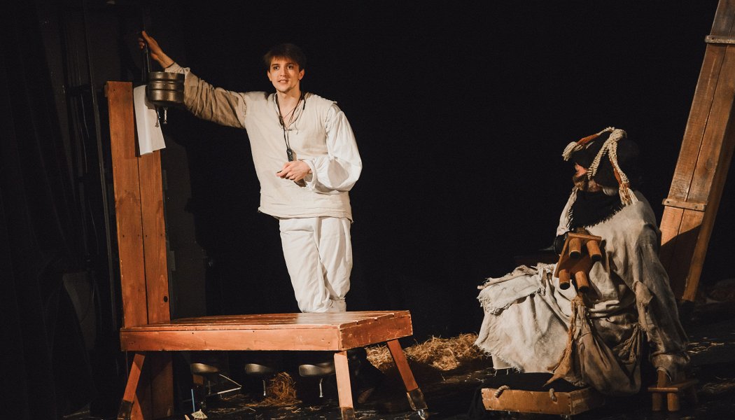 Режиссер Денис Хуснияров удивляет спорной трактовкой знакомого сюжета. Дон Жуан нарушает общепринятые порядки просто так (актер Александр Зачинает).Бунтарство от бессмысленности: вроде бы бабник, чуть-чуть дурак, грустящий повеса,то и дело пьяный в стельку. Тут испугался, тут напился, тут повинился, тут передумал. И от бессмысленного бунтарства в итоге умер, сразившись с бурей, судя по звуковому сопровождению последней сцены.