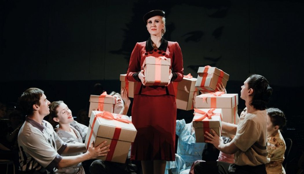 Алексей совершенно сознательно выводит всех прочих персонажей, кроме Эвы, на второй план: Перон выглядит как эхо эффектной жены, как ее тень, но ни разу не кажется сильным и уверенным лидером простого народа. Вокруг героини мелькают люди, события, которых она почти не замечает, однако несколько акцентов действие имеет: песня брошенной возлюбленной Перона, страдающей по вине Эвиты, повторяется в финале уже в ее исполнении, или поддержка Эвиты, когда она протягивает руку Перону – только позови, и в безнадежном финале уже история наоборот, только Перон дает руку жене, он поет, что будет рядом, но отдаляется, не может помочь. Кажется, что спектакль показывает, как все возвращается Эвите бумерангом.