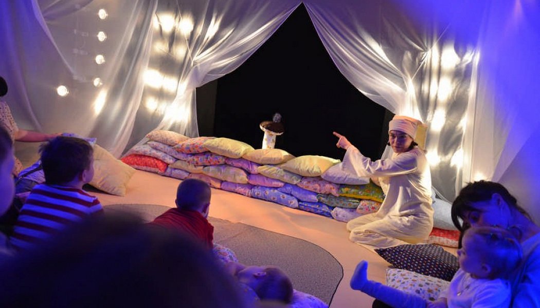 Чтобы первое знакомство с театром не испугало Вашего малыша, мы создали универсальное игровое пространство, где уютно и всё знакомо, как в детской кроватке, а обыкновенные подушки с помощью волшебства превращаются в персонажей истории про Мышку-Малышку, которая никак не могла уснуть...В нашем зале для малышей по-прежнему уютно и совсем не страшно, как в детской кроватке. Взрослые и дети сидят вместе, и не расстаются на протяжении всего спектакля.Билет приобретается на каждого зрителя независимо от возраста. В малом зале вас попросят разуться.