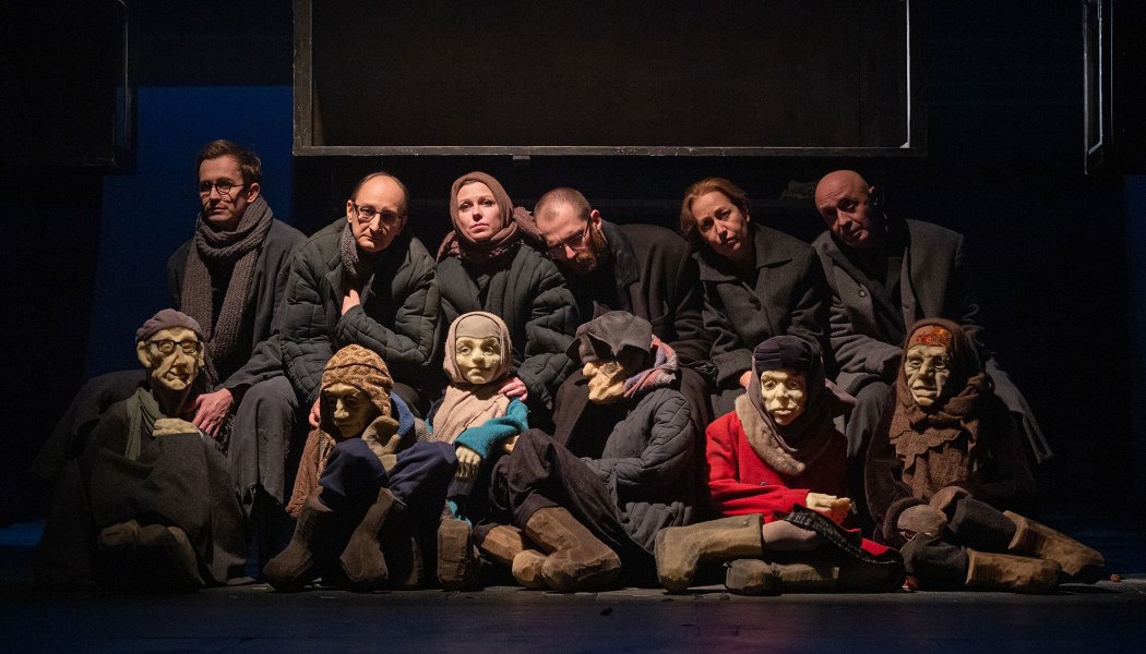 Спектакль схватил за горло с первой минуты, в то мгновение, когда живые актёры вышли со своими огромными ростовыми куклами и взяли их на руки. Легко так их подняли, нежно, как маленьких детей. Старика в беретке, женщину в красном пальто, бабушку в валенках, других – куклы лёгкие, как и блокадники, которые, наверное, тоже были невесомыми..