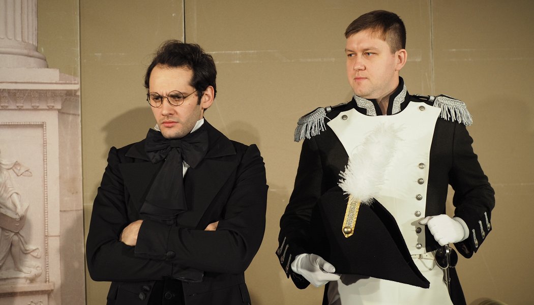 Режиссер спектакля Владимир Рецептер в 1961 году сам играл Чацкого в знаменитом товстоноговском спектакле, но лишь несколько раз. История запомнила Чацкого — Юрского. Рецептер не смог смириться с диктатурой даже на уровне театра, а в БДТ Товстоногова оттепели не намечалось, и он предпочел существование на обочине театра большого стиля — на малой сцене БДТ возник моноспектакль «Гамлет», эмблема диссидентского камерного искусства. Монологи датского принца звучали там как горестные заметки благородного гражданина на полях официального искусства и «больших надежд» 60-х. Это была единственная безукоризненно достойная позиция — позиция интеллигента «в монастыре своего одиночества». Вскоре Рецептер вовсе покинул БДТ и выстроил настоящий монастырь, где роль божества отвел Пушкину, — Пушкинский театральный центр, прописавшийся в особняке Кочневой на Фонтанке. В нем теперь и играют «Горе от ума» студенты мастерской Рецептера.