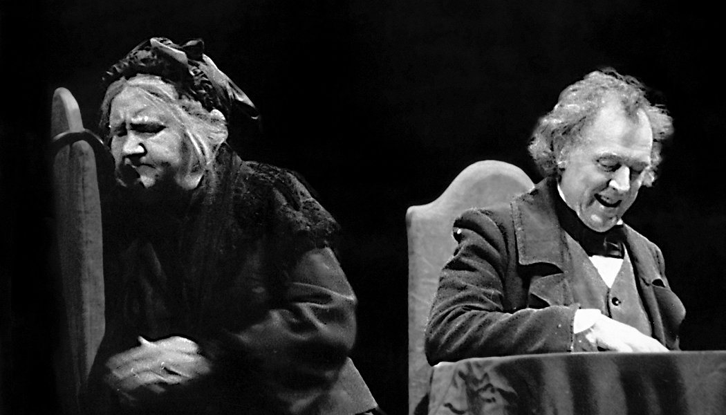 Этапная работа Кирилла Серебренникова в МХТ. Евгений Миронов в роли страшного человека Иудушки Головлева. Эту роль — как и роль князя Мышкина — Миронов позаимствовал у Смоктуновского.