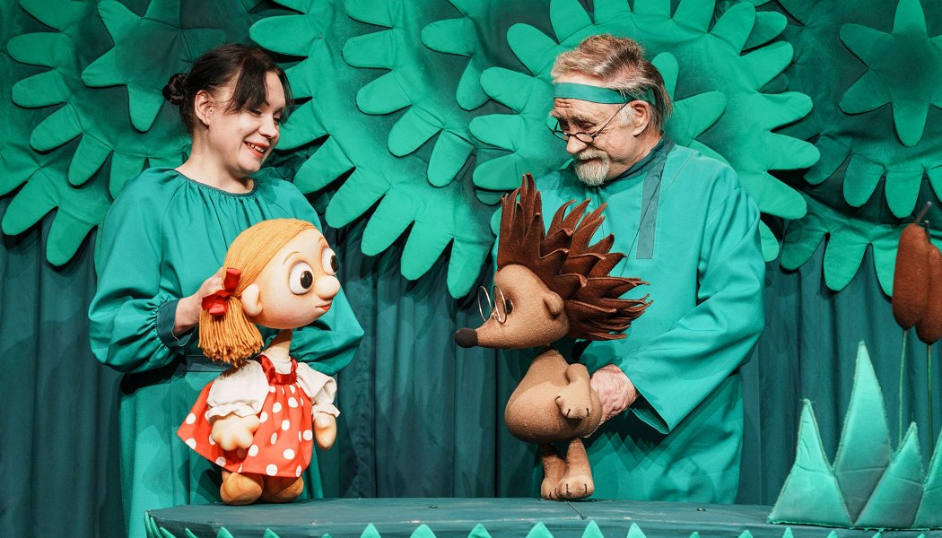 Героиня спектакля девочка Алёнка никак не может уследить за непоседливым гусёнком Дорофеем.