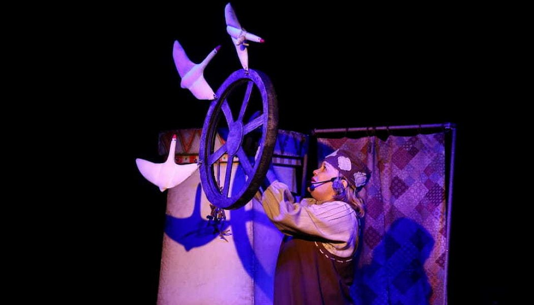 Зрители, войдя в зал, попадают в атмосферу уютной русской избы с печкой и прялкой. В доме добрая рассказчица песни поёт да мотает в клубки волшебную пряжу. Вдруг клубок оживёт в её руках и приведёт нас в старую добрую сказку.