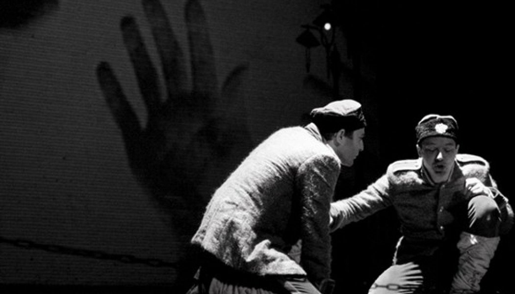 Видеоряд сопровождает действие постоянно - иногда иллюстрируя происходящее напрямую (в качесвте декораций или визуальных пояснений), иногда идя вразрез и вскрывая дополнительный смысл. Всё это стильно, со вкусом и смыслом. Однако - комментарий-пожелание: если бы видеоряд в конце был менее очевидным - это стало бы мощнейшим аккордом. Сейчас есть ощущение упущенной возможности крутого финального удара. Ну, что это такое - Ленин, Сталин, голод, трупы, винтовки?... Это первый слой. Можно ведь вытащить из текста (или контекста, если угодно) какие-то образы, которые подействуют в тысячу раз сильнее. И именно это будет катарсисом. Может быть хрустальные шары? Может быть просто один из странных и жутких кадров с противогазом? Может быть вообще что-то другое? Может... Ну, что я буду выдумывать. У видеохудожника спектакля Янука Латушки голова на месте и три ТЭФИ в кармане.