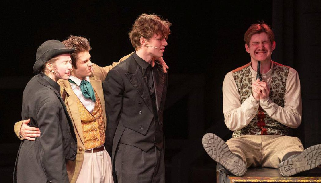 Великолепная постановка молодого режиссёра Сергея Мельникова поражает своей энергетикой и темпом. События спектакля намечаются точечно и происходят стремительно. Актёры всё время отточено действуют на сцене, ни минуты молчания и неподвижности, а каждый момент размышлений и действий героев пьесы сопровождается решительными ритмичными стуками.