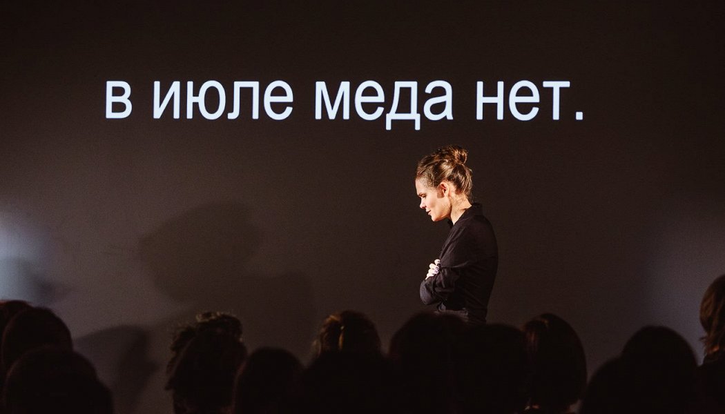 Актриса Алена Старостина, как и режиссер ее моноспектакля Дмитрий Волкострелов, окончила актерскую мастерскую Льва Додина. Но взялись они за текст, от которого Додина, пожалуй, стошнило бы. Знаменитый фантасмагорический монолог маньяка, увлекающегося расчлененкой и поеданием собак, сочинил в 2006 году нынешний певец любви и просветления Иван Вырыпаев. Алена Старостина играет девственную свежесть восприятия: смачный речевой трэш она проговаривает так, словно впервые складывает из букв нецензурные слова и не ведает их значения. Многообразия выразительных средств ждать не следует; к моменту премьеры «Июля» Волкострелов уже сформировался как убежденный минималист.