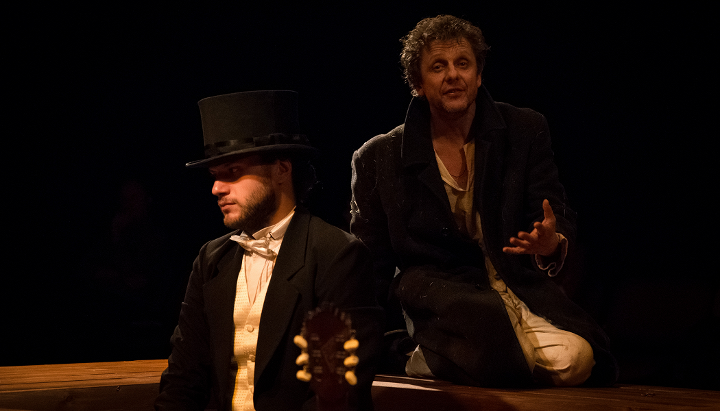Вторым спектаклем, на который я пошла в рамках гастролей зеленоградского «Ведогонь-театра» в Москве, был «Какой уж тут Миколка!» - сцены из романа Ф.Достоевского «Преступление и наказание». Постановка вновь была в «Боярских палатах» СТД, о которых я уже писала, что они – идеальная локация для многих камерных спектаклей. В «Миколке..» свободная рассадка, зрители сидят на стульях прямо вокруг стола, за которым артисты – их можно было бы даже коснуться рукой при желании, это практически иммерсивный спектакль.
